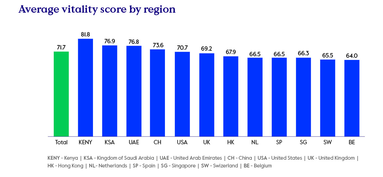 Our latest Vitality Study found that globally mobile individuals had higher-than-average vitality scores despite a higher incidence of stress. Our key takeaways include: